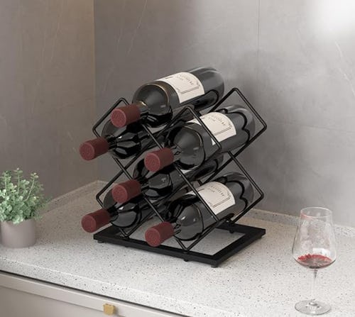 A Geometric 6-Bottle Wine Rack With Nonslip Feet