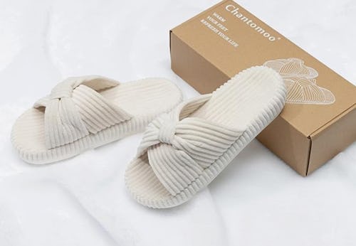Shoppers reported that these house slippers are soft, comfy, and well-made. They have arch support and memory foam insoles that make it feel like you're walking on a cloud. They also feature an EVA sole to prevent slipping. Plus, they’re designed with a twist knot and are made from a corduroy fabric that’s stylish and elevated.