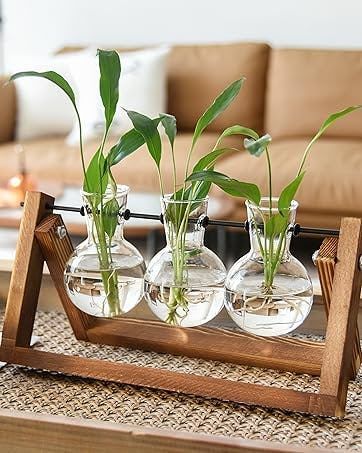 This plant terrarium will add a stylish element to a desk, table, shelf, or windowsill and bring in some greenery. It features a wooden stand and swivel metal holder for the three bulb glass vases. It can be used for floral arrangements, water rooted plants, herbs, and even faux flowers. Customers reported that it’s easy to assemble and well-made.