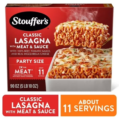 Speaking of lasagna, this is the MVP of freezer meals. Layers of pasta, seasoned beef and tangy tomato sauce that taste suspiciously like homemade. Pop it in the oven while you throw together a salad and serve an Italian feast without breaking a sweat. (The “party size” means you’ve got leftovers to pack up for lunch!)