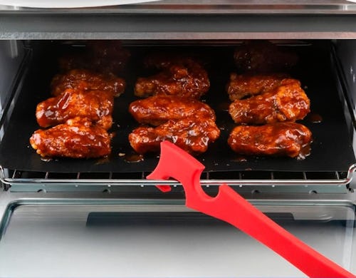 It looks like a piece of mystery hardware, but this silicone oven rack puller is designed for tight spaces where bulky mitts don’t fit, such as air-fryer toaster ovens, countertop ovens, and convection models. It withstands up to 450 degrees and features a long, sturdy handle with cutouts that let you pull, push, or hook hot racks and trays without getting too close. Compatible with models from most major brands, it’s dishwasher-safe and built for daily use.