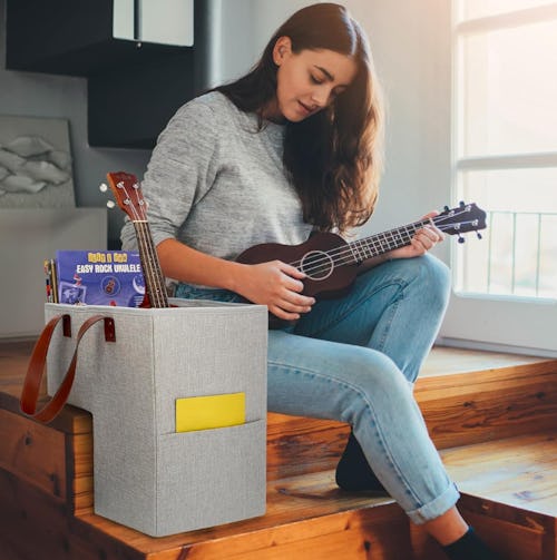 This cleverly shaped stair basket puts an end to steps that are littered with rogue toys, lone socks, and other random items that family members are waiting for someone else to pick up. Made from a linen-style fabric, it fits over two standard steps, turning an unused area into an efficient storage zone. Reinforced handles make it easy to grab and tote things up and down stairs, and a structural support panel gives it a weight-bearing capacity of 25 pounds.