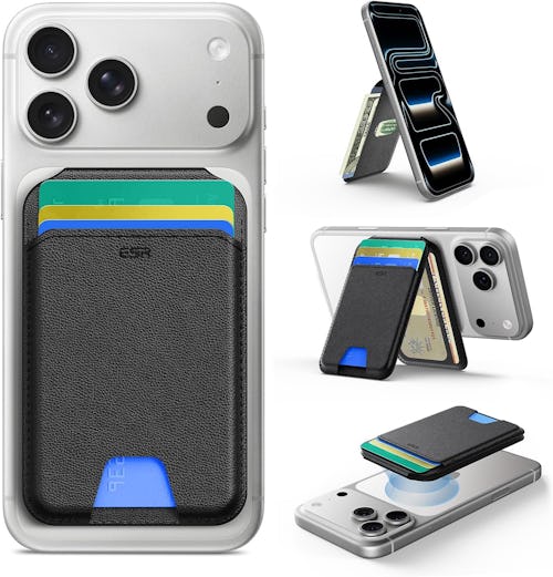 This MagSafe wallet stand is one of those weird little upgrades that adds real function and everyday convenience to your phone. Made of faux leather with built-in RFID blocking, it safely stores up to five cards, including a clear window slot for your ID. Strong magnets secure it to your device, and it folds into a sturdy kickstand — perfect for FaceTiming grandparents, keeping kids entertained, or watching content completely hands-free.