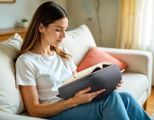 This cloud-soft lap pillow turns reading time into a stress-free setup. A squishy, bean bag-like filling molds to your lap for stable, pressure-free support, while faux leather top holds your book up to 1.5 inches thick upright. It’s an ideal accessory for anyone who loves to read everywhere at anytime.