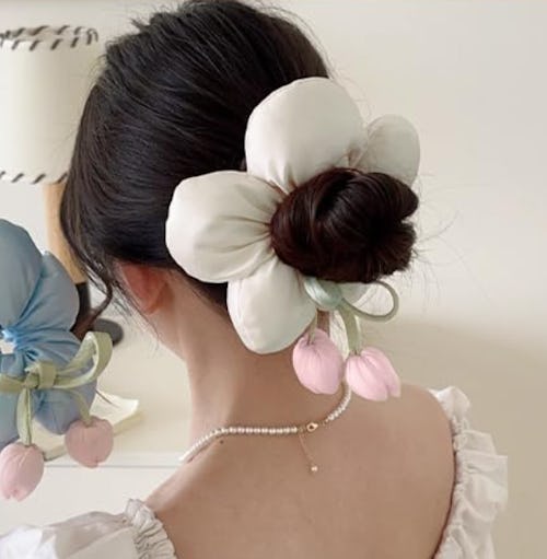 An Oversized Satin Tulip Scrunchie For Bold Hair Moments