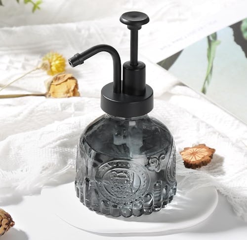 This little gothic soap dispenser adds a level of visual interest to your bathroom or kitchen sink. It has a curved pump and a 7-ounce glass canister with a wide opening to make refills painless. Use it for hand soap, lotion, dish soap — basically anything that deserves a dramatic vessel. You can also get it in clear.