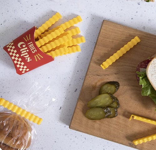 These crinkle-cut French fry bag clips make sealing snacks way more fun. Each clip is made from durable plastic and sized to seal chips, pasta, grains, bread, and more. Compact and lightweight, they’re perfect for everyday kitchen use or tossing into a picnic bag for on-the-go freshness. And the set of 12 comes stored in a magnetic “fries carton” box that can stick to your fridge so you never lose them.