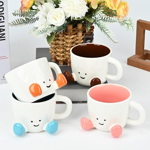 This adorable mug looks like it wakes up every morning ready to give you a pep talk. The smiling face is made from durable ceramic, so it’s tough enough to handle your daily caffeine habits. The 12.85-ounce size fits everything from coffee to scoops of ice cream, and it comes in several cutesy color options.