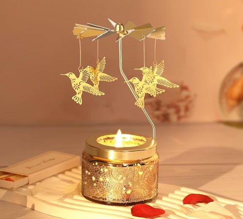 A Rotating Hummingbird Candle With Relaxing Rose Scent