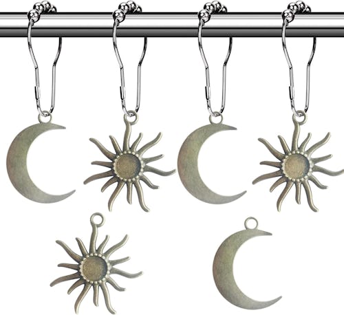 These celestial shower curtain hooks bring galactic charm to your bathroom with sun and moon designs plated with rust-resistant materials. Each hook can be clipped shut, so it slides smoothly along straight or curved rods while keeping your curtain secure. They're durable and easy to install, making the hooks a quick way to add personality to your bathroom.