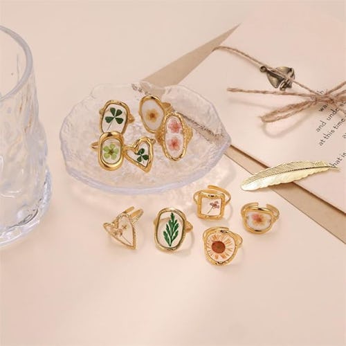 This set of 18-karat gold–plated rings adds a cute floral touch to any outfit. The five-pack has chunky, adjustable designs that layer easily. Each piece is made from durable, tarnish-resistant materials so they can stay bright and shiny through daily wear. Whether you pair one with a simple tee or stack all five for cottagecore drama, the rings are a fun, affordable way to refresh your accessories collection.
