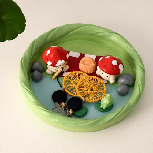 This resin jewelry dish looks straight out of a fairytale thanks to its tiny frog and mushroom details — all sealed with glossy acrylic finish. At about 5 inches wide, it’s the perfect little pond dish for rings, keys, and small accessories that adds charm to nightstands or vanities. It's the kind of decor piece that makes you smile every time you put something in it.
