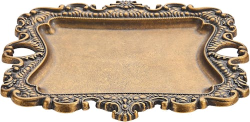 This antique-style jewelry dish looks like it belongs on an old-money vanity, with its vintage brass finish and metal construction. It’s the perfect little landing pad for rings, earrings, keys, or coins on your nightstand or by the sink. You can even use it as a styling prop for photo flat-lays or just to make your dresser look instantly more elegant.