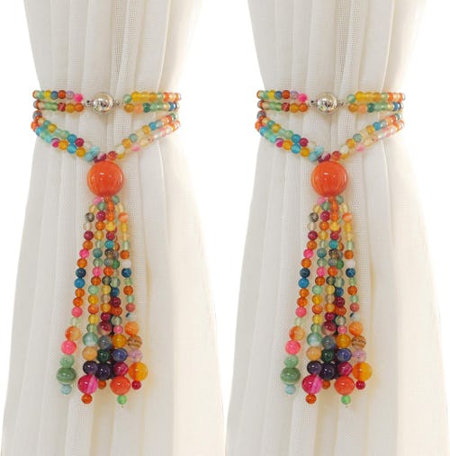 These agate tiebacks are basically jewelry for your curtains. The strong magnets in these ties make it easy to snap them closed around your drapes, and the colorful beaded design makes even plain curtains feel upscale. The ties clip closed in multiple ways, so you can style them to the side, front, and more.