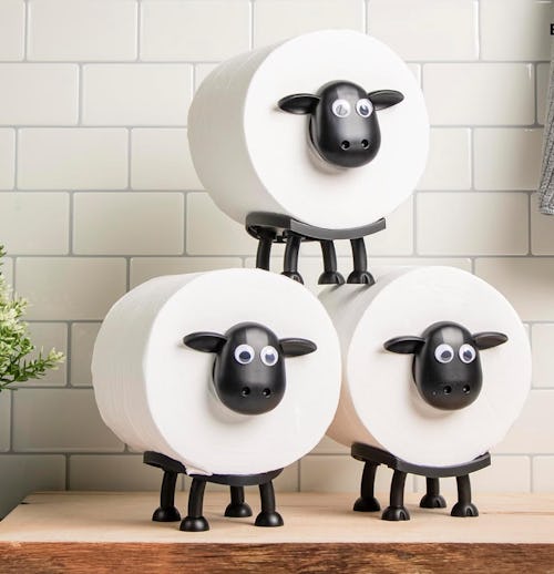 This best-selling toilet paper storage set turns your bathroom into a tiny sheep pasture. Each freestanding black sheep holds one TP roll, and the flock of three keeps everything organized while doubling as hilarious bathroom decor. To assemble, just place a roll on the legs and slide the cute head through the cardboard center.