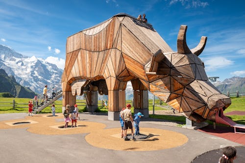 I’ve never traveled anywhere in the world with a better and more plentiful playground than Switzerland. I feel like every little village and neighborhood has a very well-kept, creative, and different playground for kids, in both private and public spaces. Many of these playgrounds are integrated into the surrounding area, so parents can grab a coffee or beer and sit at a table and watch their kids play.