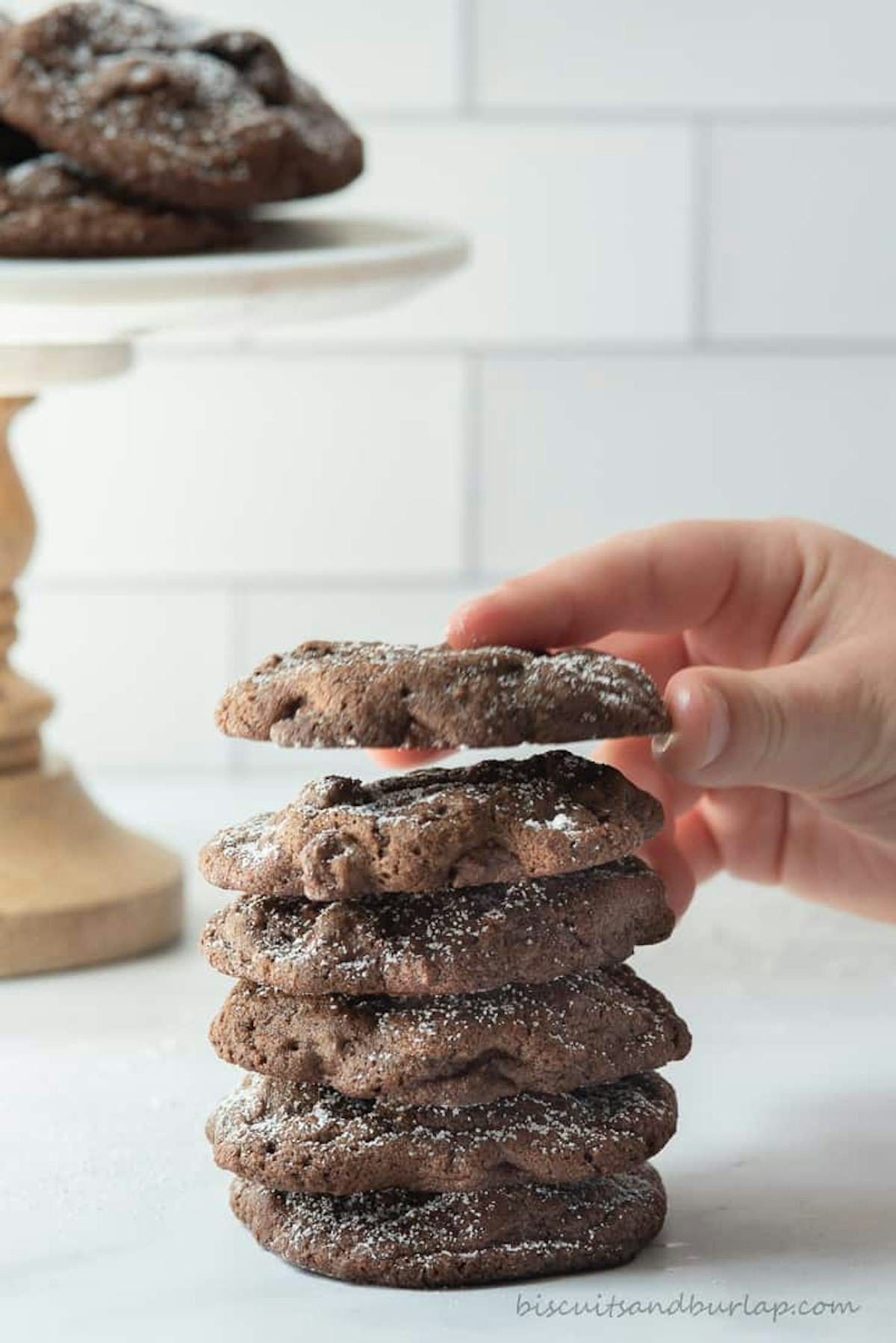 Biscuits & Burlap’s double chocolate cookies are for serious chocolate lovers only. This recipe is from scratch, but it’s simple: Mix your dry ingredients over here, your wet ingredients over there, then mix them together and chill for a couple of hours before baking.