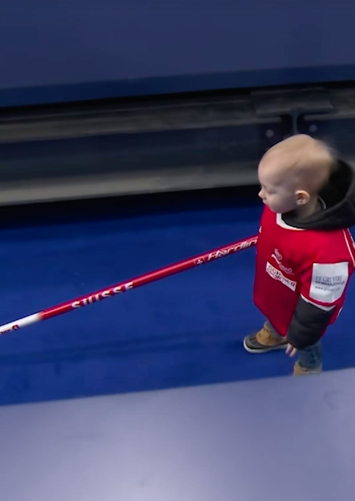 Swiss couple Yannick Schwaller and Briar Schwaller-Hürlimann’s 18-month-old son, River, and Canada’s Jocelyn Peterman and Brett Gallant’s two-year-old son, Luke, stole the show away from their parents, who all competed in the curling mixed doubles competition.