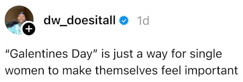 In a Thread post with now over 1.2k replies, one guy said, “Galentines Day” is just a way for single women to make themselves feel important.”