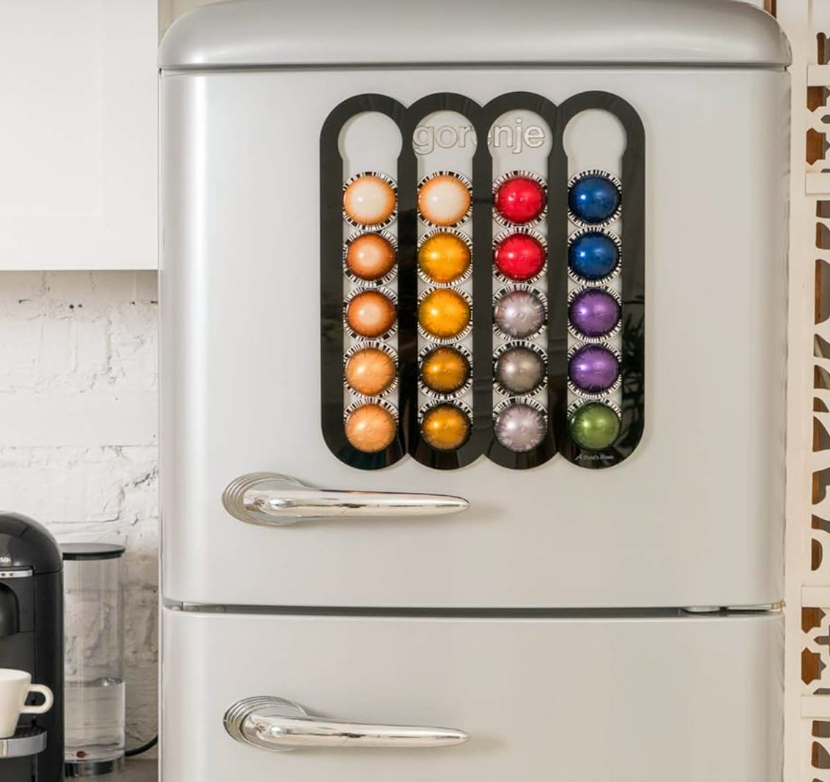 A Magnetic Coffee Pod Holder That Sticks Right To Your Fridge
