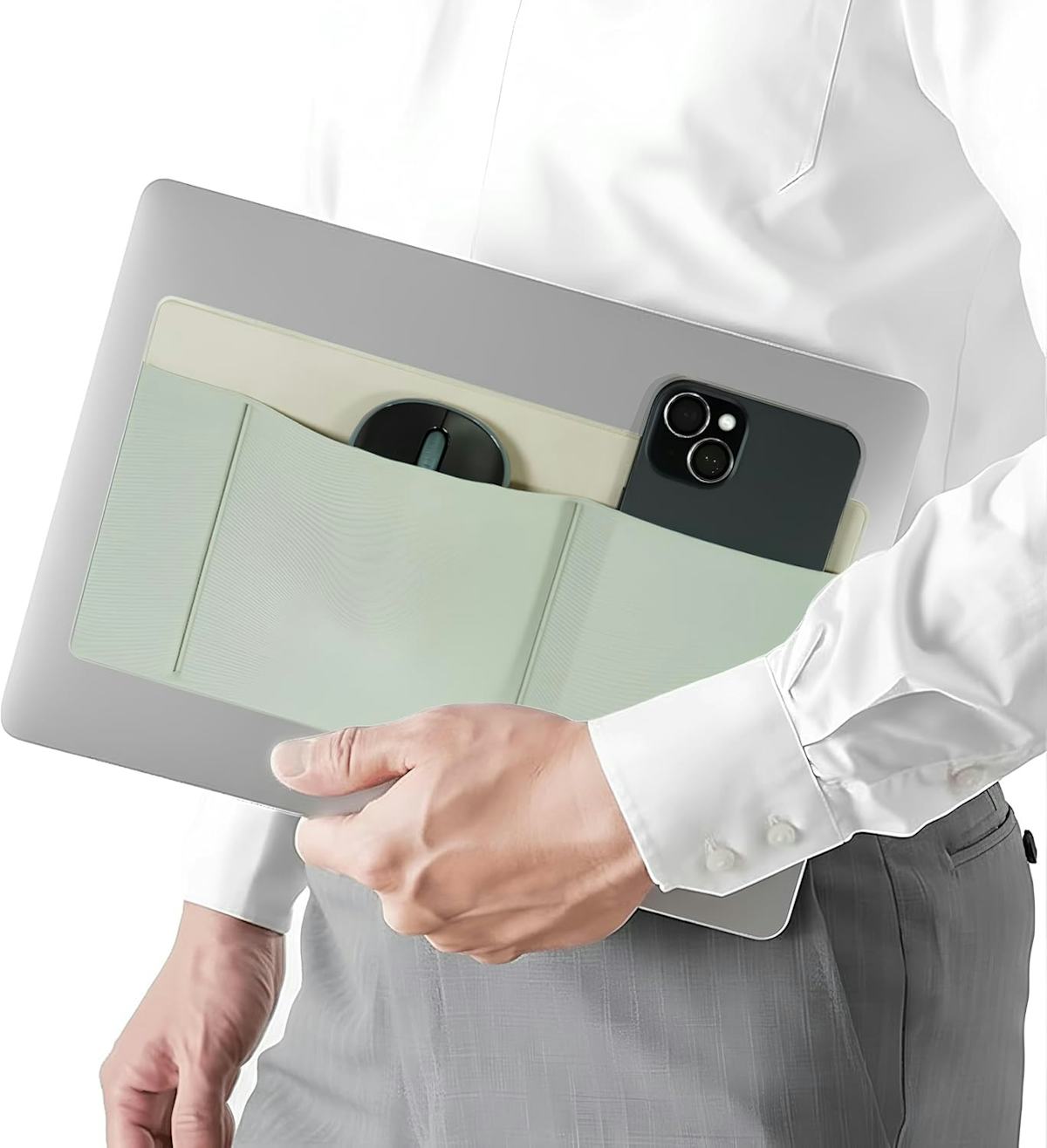 This clever laptop sleeve consists of a stick-on pouch that uses industrial-grade 3M adhesive and stays firmly attached without leaving residue. The three expandable pockets are perfect for holding a mouse, external hard drive, cables, and more, keeping your gear handy and your workspace clutter-free. Choose from three colors.