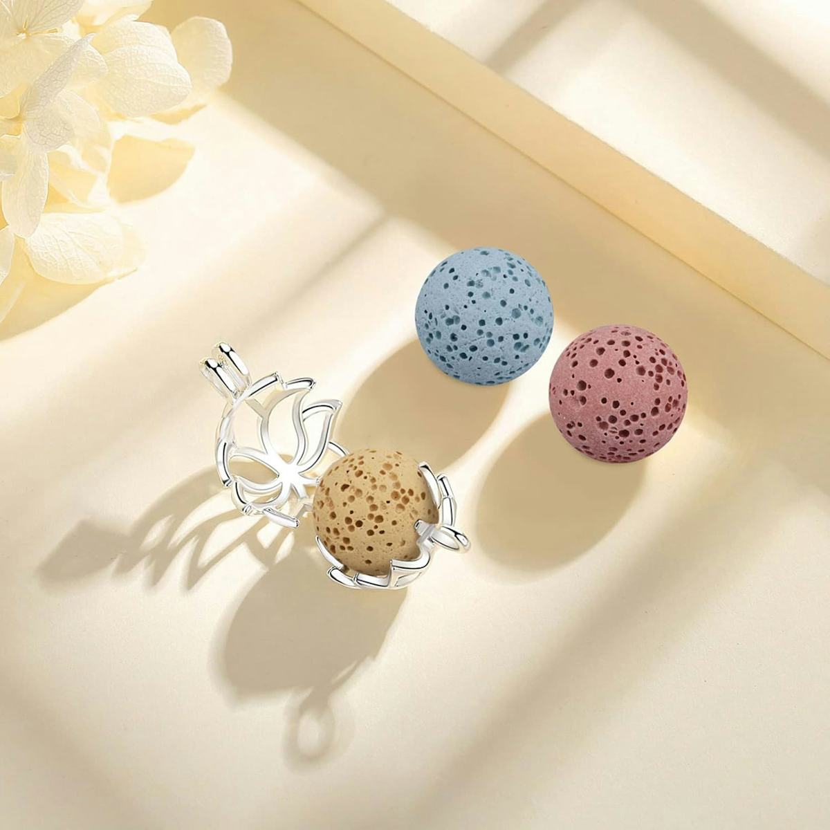 This diffuser necklace is a charming mix of style and aromatherapy. The small lotus flower pendant sits on a 24-inch snake chain, paired with seven lava rock stones that add a subtle, earthy vibe. Simply open the locket when you want to switch out a rock, and add one to three drops of your favorite essential oil.