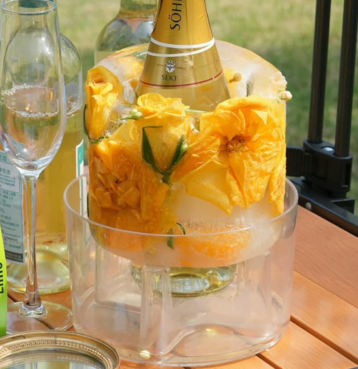 Instantly upgrade your party setup with this stunning ice bucket mold. The clear design lets you freeze fruit, flowers, or herbs right into the ice, turning ordinary cubes into a beautiful centerpiece. It keeps your wine perfectly chilled while adding a creative touch to the table. BPA-free, dishwasher safe, and easy to use, it’s ideal for weddings, celebrations, or just a fun night with friends.