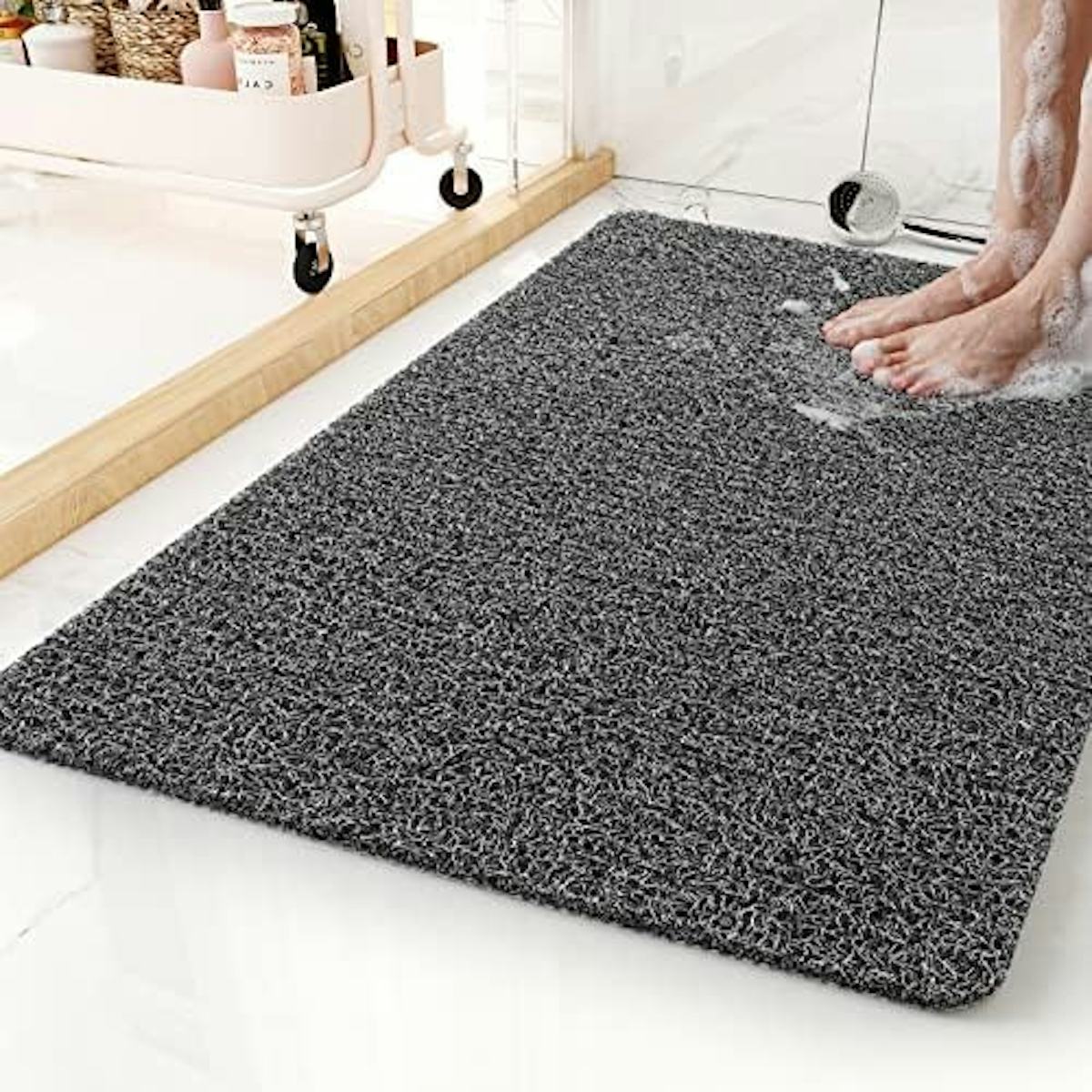 The loofah‑style textured surface of this bath mat is so comfortable to stand on, and it even provides gentle massage‑like support while showering. The PVC material drains water quickly and dries fast, helping prevent puddles and mildew growth. The nonslip backing stays put on wet tub surfaces. It comes in three colors and five sizes.