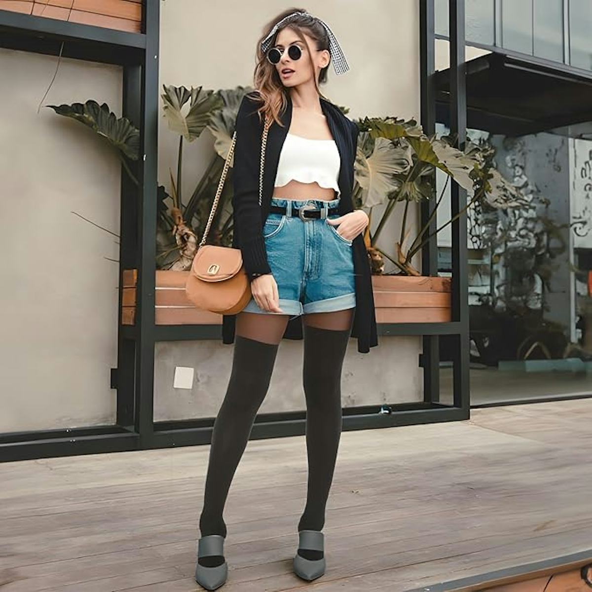 If you love the look of thigh-highs but hate having to constantly pull them up, this faux version is for you. These tights feature a thick ‘sock’ that comes up to about mid-thigh and seamlessly transitions into sheer tights. And you’ll appreciate the V-shaped briefs that add extra coverage and support.