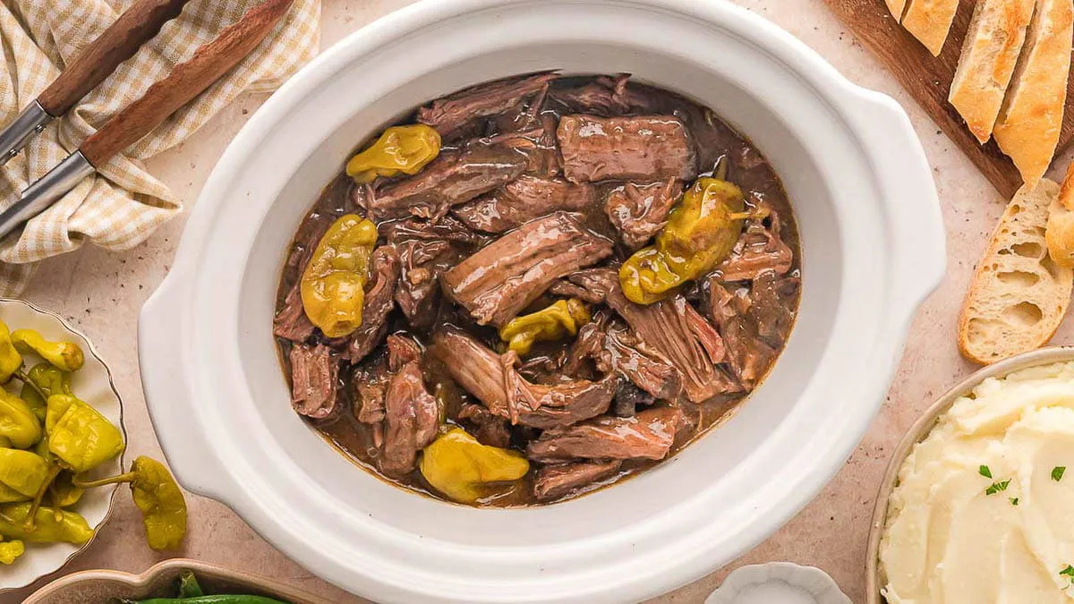 OK, let’s say you need a hearty dinner that’ll make enough for leftovers. Try this slow cooker Mississippi pot roast from Tessie’s Table. Chuck roast, ranch mix, au jus gravy mix, butter, and pepperoncini — that’s all you need! Serve it over rice or mashed potatoes... but, either way, you’ll want to make this again and again.