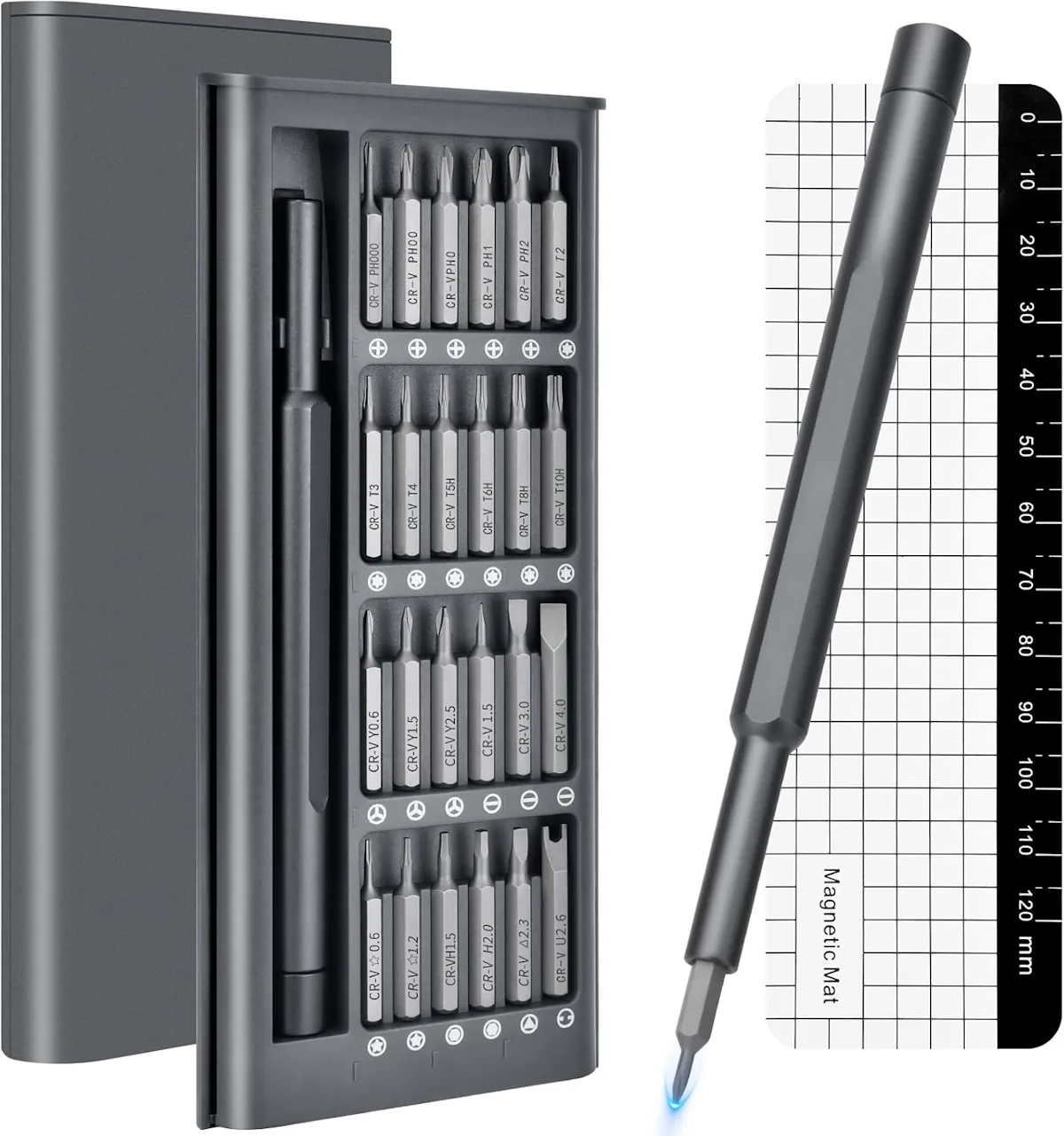A Precision Screwdriver Set With 24 Interchangeable Heads
