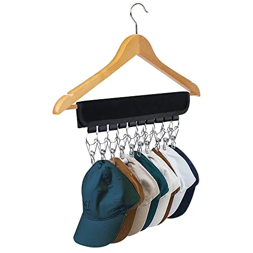 Amazon -Hat collectors will appreciate receiving this convenient cap organizer as a gift. The soft fabric sleeve slips over almost any hanger rod and feature strong hook-and-loop closures and stainless steel clips for ultra-practical storage. The organizer contains 10 hooks for maximum storage options.