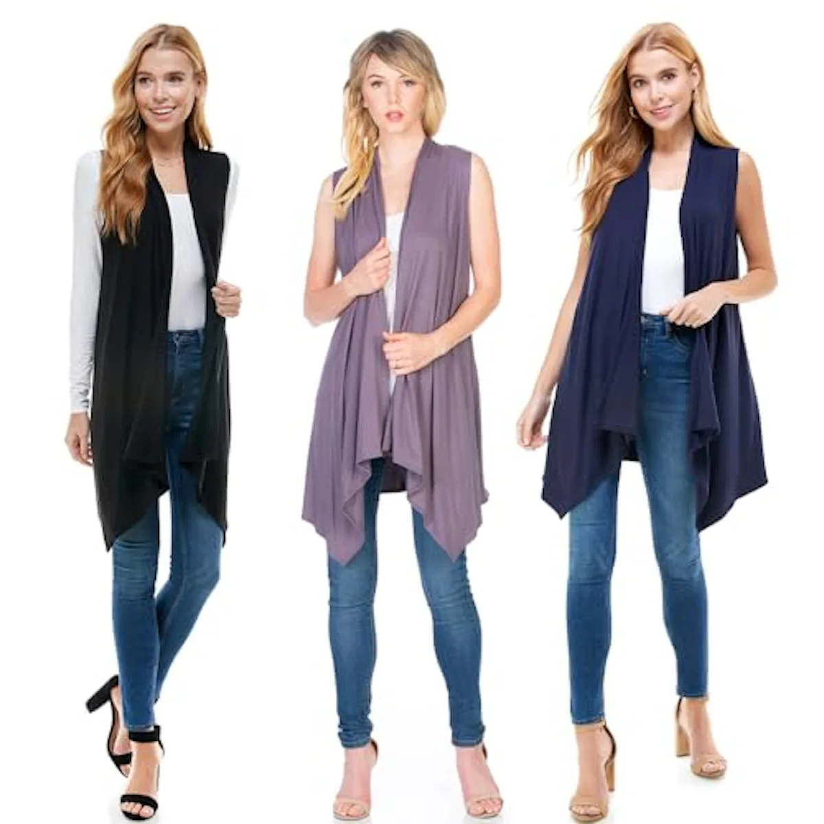 Sleeveless Cardigans With A Tunic Length & Asymmetrical Hem