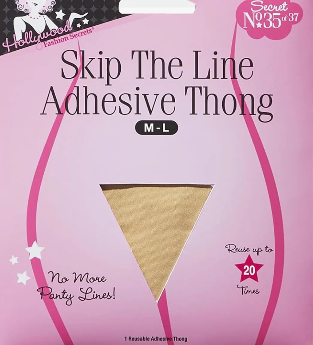 Eliminate panty lines with these adhesive thongs. Their strong adhesive sticks to skin, but they're easy to take off at the end of the night. Made of a nylon/spandex fabric blend, they have a cotton crotch that lets you breathe. Reuse each pair up to 20 times. Bodycon clothes have never been so comfortable.