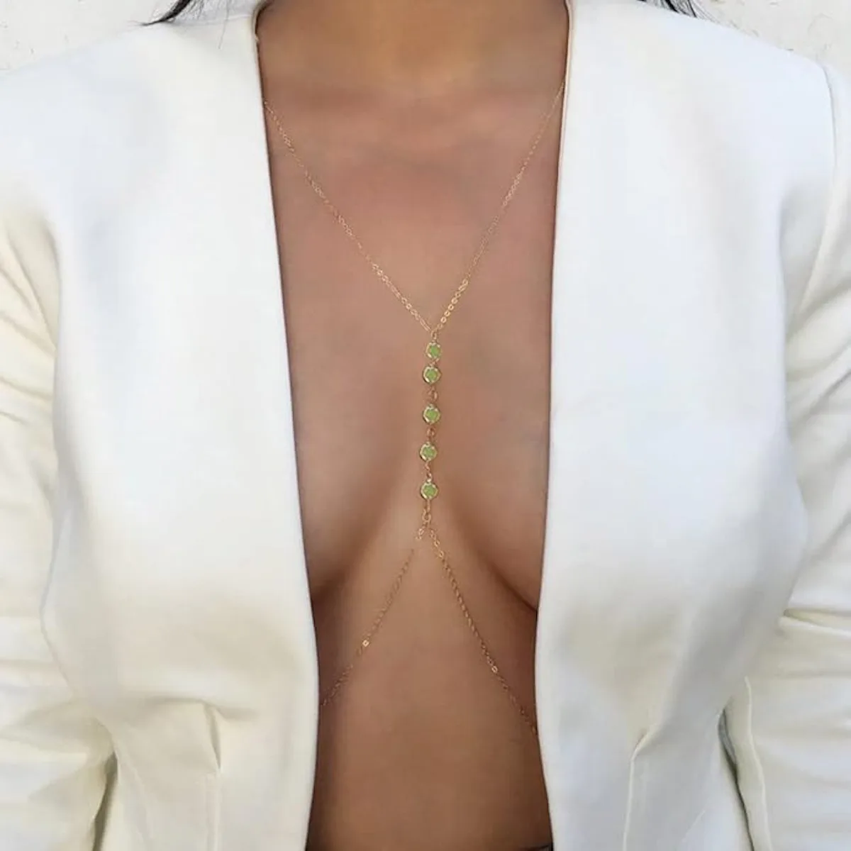 Let your inner mermaid run wild and free with this gold body chain. Made of hypoallergenic metal, it won't make your skin break out. It's also free of nickel, cadmium, and lead. Cubic zirconia gems down the middle add a pop of color and sparkle. Pair it with your favorite bikini for your next beach trip.