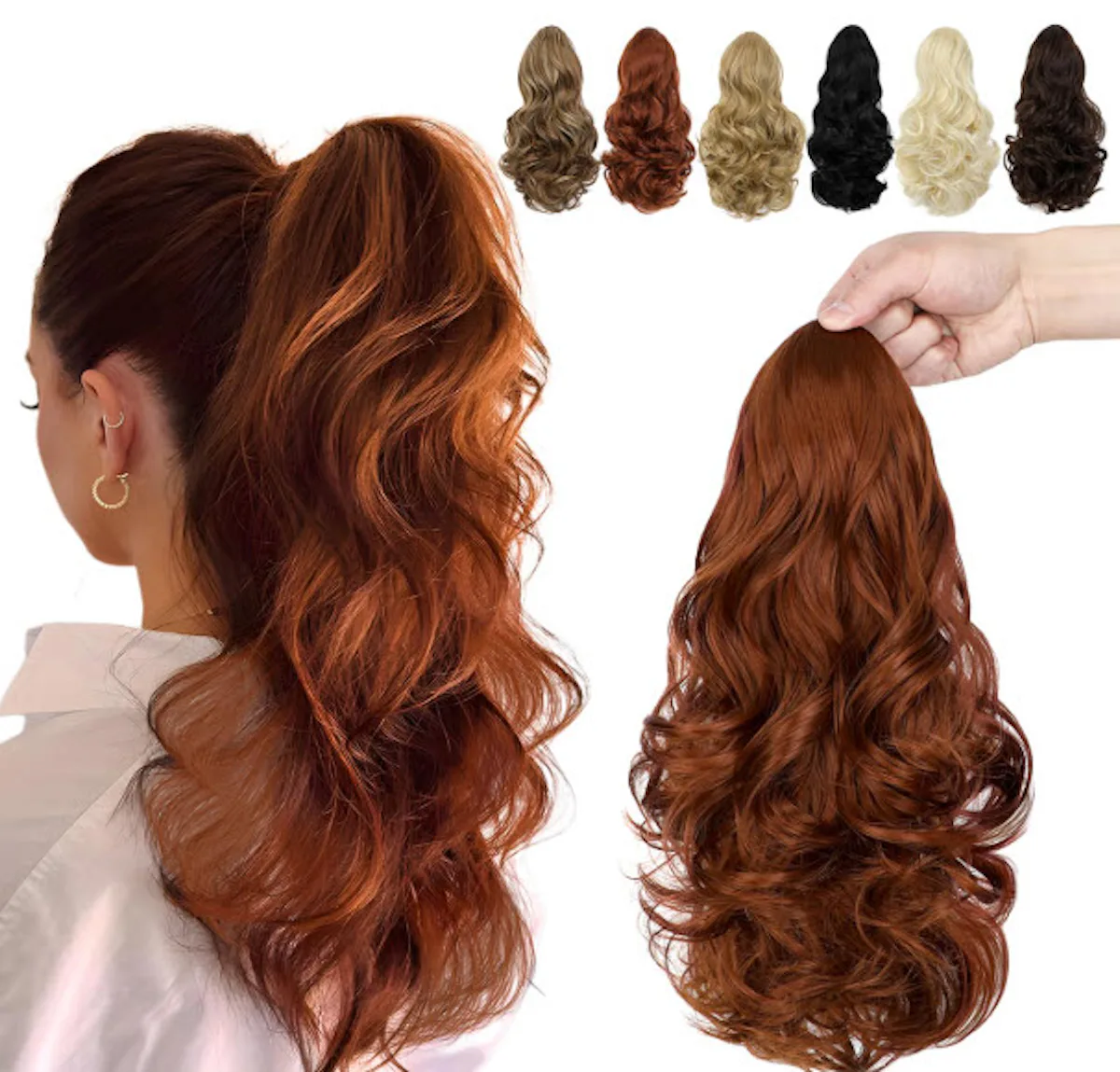 Boost volume with this drawstring ponytail. At 15 inches long, it’s much more efficient than mainlining hair growth vitamins. Its synthetic fibers are heat-resistant, so you can style to your heart's content. Two hair combs and a tight drawstring hold in place. Use it on short hair for a total switch-up, or make your long hair look even longer.