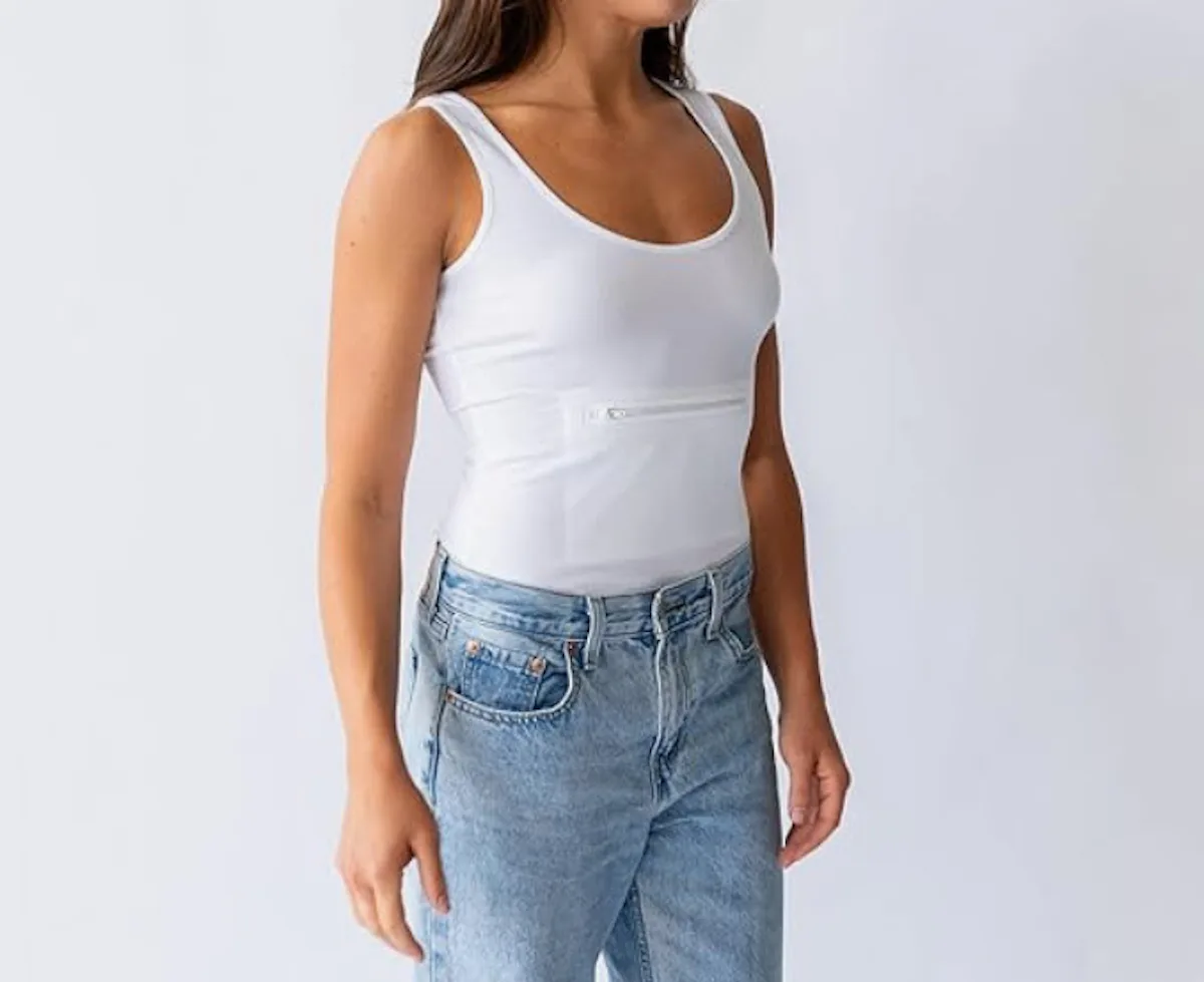 Keep your stuff safe in this zippered tank top. Its hidden pocket conceals your belongings from pickpockets and thieves. It's the right size for your phone, room key, and passport. Made of breathable cotton, it's great for walking tours and outdoor adventures. Its sturdy metal zipper won’t budge, and no one (except you) will know where to find your valuables.