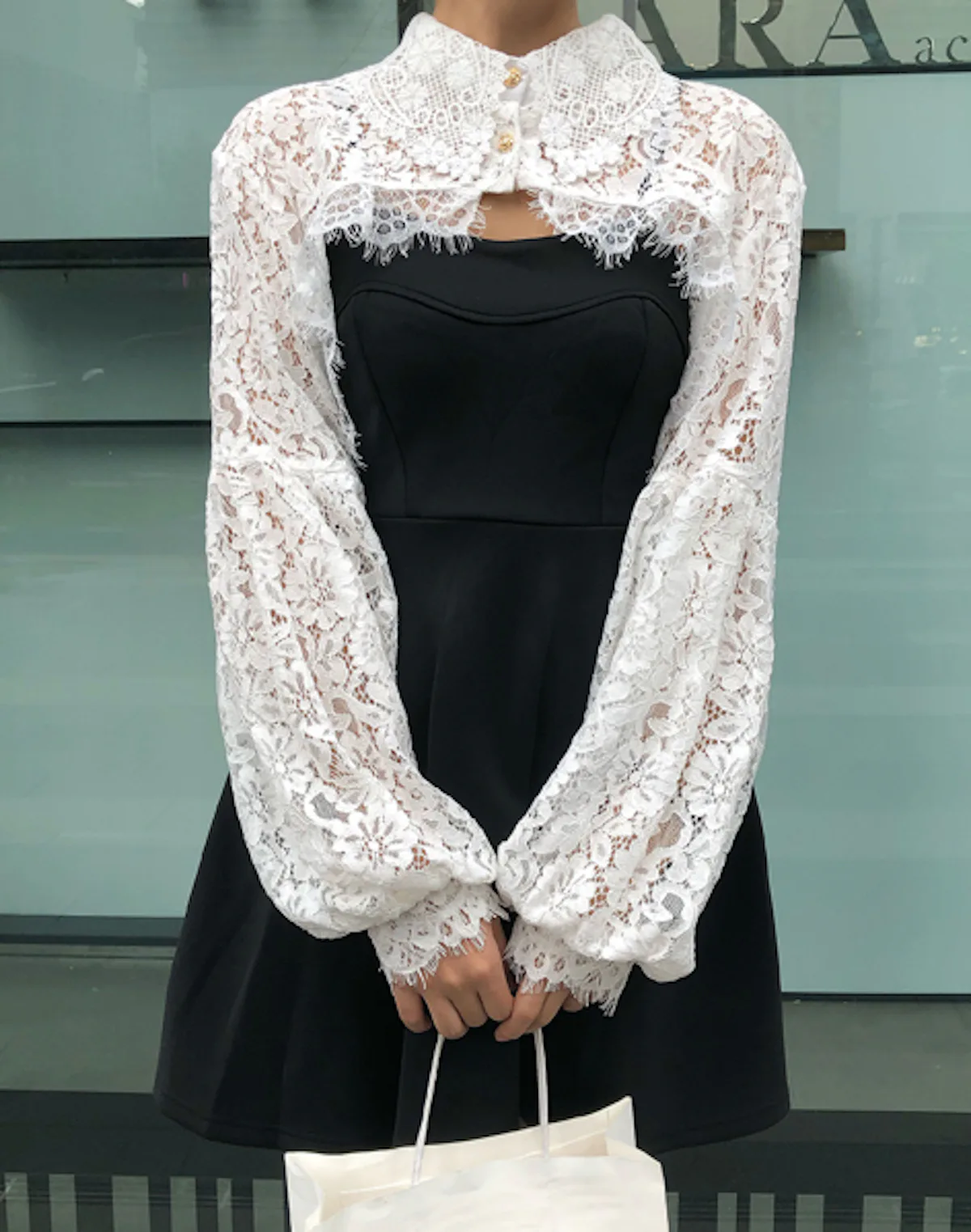 If you’ve ever wanted to live inside a Jane Austen novel, you’ll love this detachable dickey. Made of lightweight lace, its intricate details are a work of art. Its two gold buttons sparkle in the sun while you're out on a promenade. Its sleeves cinch at the wrists, showing off your jewelry. It would look equally at home in the Regency era and the 21st century.