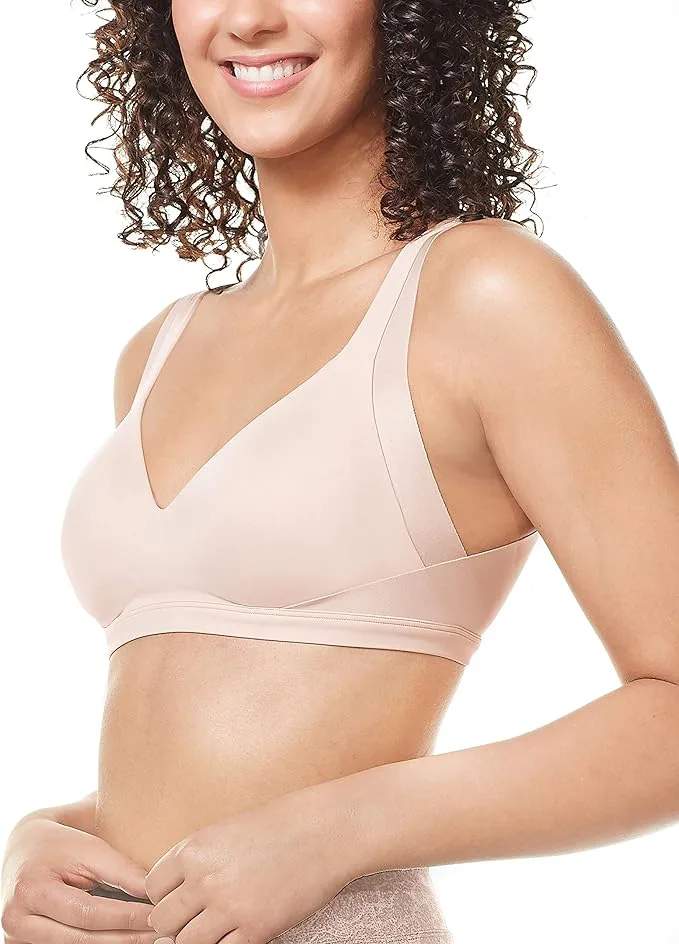 This comfortable bra goes the extra mile. Its wireless design is already a win, but what really sets it apart are the innovative side panels that help prevent bulge and spillage. The result is a smoother-looking silhouette underneath clothes.